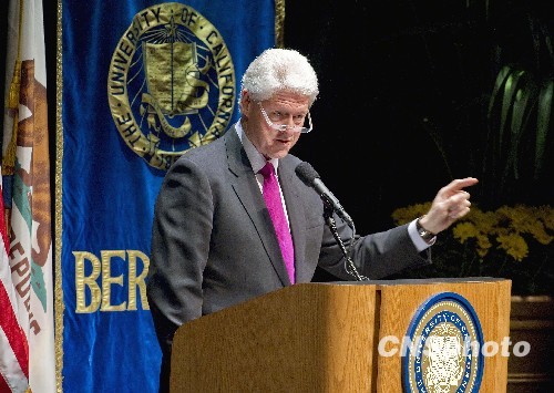 当地时间2月24日下午,美国前总统克林顿在加州大学伯克利分校谈“世界公民”的职责。他指出,当今世界相互依存,相互帮助,共同发展。世界公民应把自己美好的意愿化为实际行动,积极参与世界事务,履行世界公民的职责。中新社发 陈钢 摄