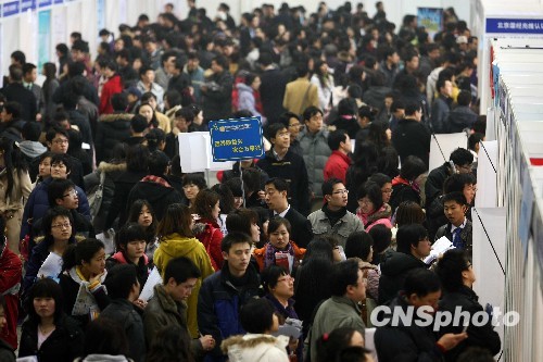 2月25日,第37届京城职场2010年春季首场农展人才招聘洽谈会在北京全国农业展览馆新馆召开。中新社发 富田 摄