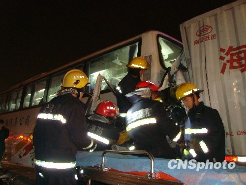 图:杭甬高速发生货车与大客车追尾事故(2)