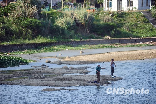 图:海南连续干旱 万泉河大片河床裸露(2)