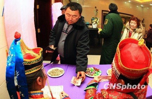 图为参与者入场前缴纳一定的费用,共同承担聚会的费用。中新社发 刘新 摄