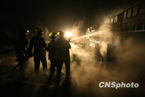 图为消防官兵正在灭火。中新社发 刘仁 摄