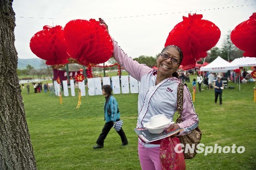图为一位外族裔游客准备将两只红灯笼带回家。中新社发 陈钢 摄