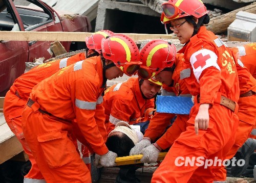 组图:中国国家地震救援队进行救援演示