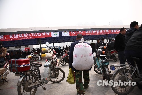 组图:四川农民工节后进城摆摊求职(4)