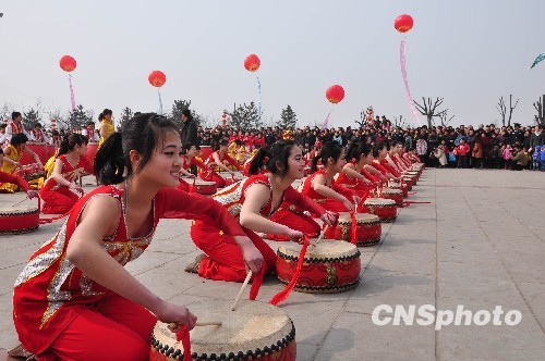2月26日,山西稷山县2010年“和谐之春”锣鼓大赛在县新世纪广场举行,来自全县10个纳税大企业的锣鼓表演队用锣鼓喜迎元宵佳节。中新社发 三皇骄子 摄