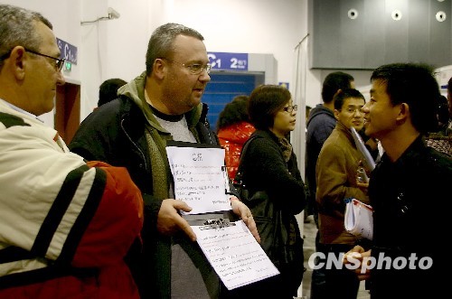 2月26日,浙江义乌448家企业带着6500余个岗位在该市国际博览中心举办春季人才交流会,跨出虎年“招贤”新步伐,当天共有9000余人在就业意向书上登记。图为外商自制招工牌招工。中新社发 董齐 摄