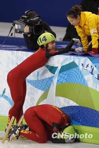 当地时间2月26日,中国选手王濛在2010年温哥华冬奥会短道速滑女子1000米的决赛中摘得金牌,成绩是1分29秒213。另一名中国选手周洋被取消了成绩。至此,中国短道速滑女队包揽了本届冬奥会女子全部四个项目的金牌,成为第一个囊括女子短道速滑全部4枚金牌的队伍。 图为王濛跪倒在教练李琰跟前。