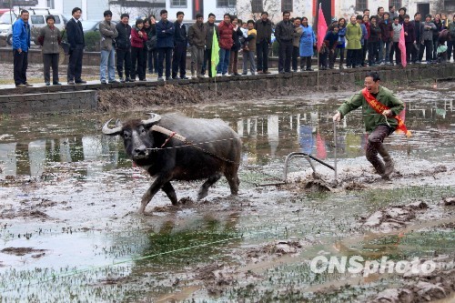 2010年2月27日,安徽黄山市黄村举行首届农耕健身大赛。中新社发 方也广德 摄