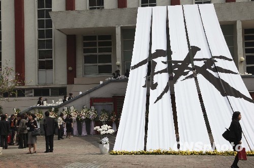 老报人成舍我之女成露茜的追思会——“再见,lucie”27日上午在台北世新大学大礼堂举行。力促社会改造、为弱势群体发声的成露茜曾获“女斗士”奖,被称为新闻界和学术界的“大侠”。追思会的会场外悬挂着巨大的“侠”字。中新社发 耿军 摄