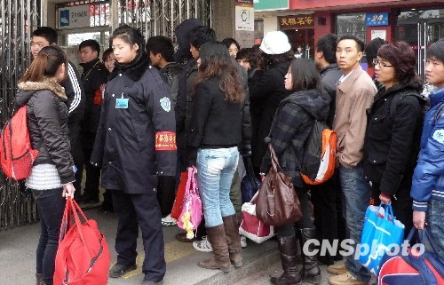 2月27日,中国传统元宵佳节前夕,北京探亲、访友以及往返客流量明显增大。图为北京军事博物馆地铁站外,挤满了等候进站的乘客。中新社发 钱兴强 摄
