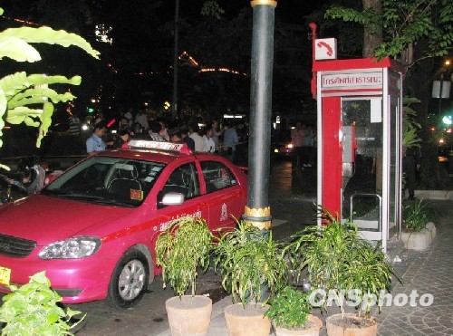 泰国曼谷盘谷银行门口前27日晚发生一起爆炸事件,目前尚未有伤亡报告。当地时间周六晚上10点左右,位于曼谷市中心是隆路盘谷银行门前的一个电话亭发生爆炸,爆炸震碎了银行的玻璃窗。爆炸发生后,曼谷防爆警察立即赶往现场调查。目前爆炸原因尚不清楚。中新社发 顾时宏 摄
