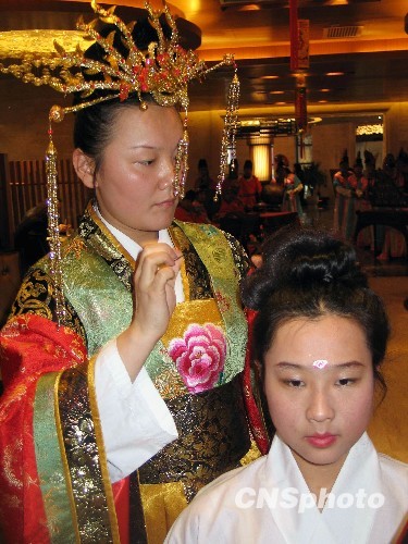 图为郑重地簪上发笄的场景。中新社发 冽玮 摄