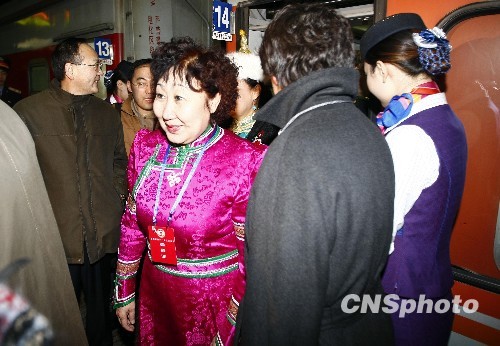 2010年3月1日,来自内蒙古自治区的全国政协委员走下火车。当日,来自内蒙古自治区的全国政协委员抵达北京西站。
