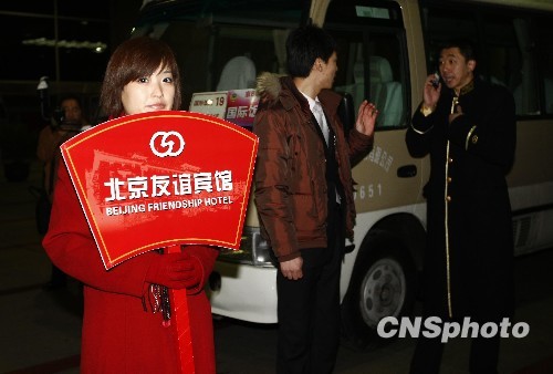 图为两会驻地的服务员早早来到北京西客站,准备迎接来自内蒙古自治区的全国政协委员抵达北京。中新社发 杜洋 摄