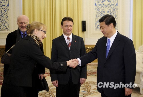 3月1日,中国国家副主席习近平在北京人民大会堂会见了克罗地亚外长扬德罗科维奇(中)一行。
