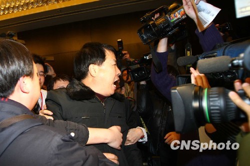图为丰田车主在场外抗议。中新社发 富田 摄