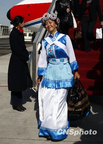图:云南代表团的少数民族代表盛装抵京(2)