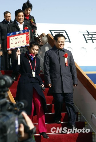 图为吉林代表团抵达北京,省长王儒林和前来迎接的人员热情拥抱。中新社发 杜洋 摄