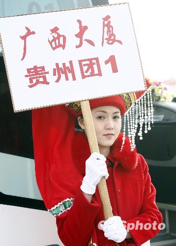 图:礼仪小姐首都机场迎接全国两会代表委员(2)