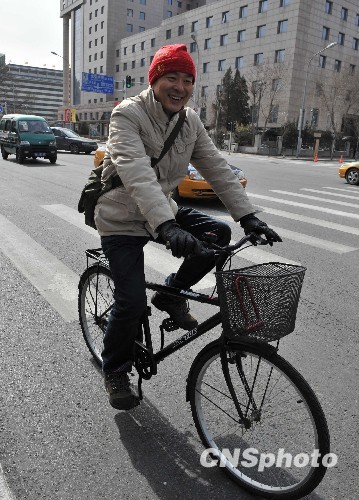 全国"两会":濮存昕委员骑自行车去大会报到(2)