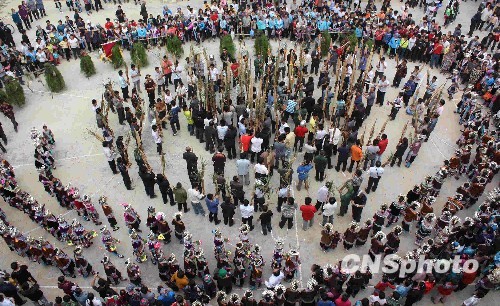 3月2日农历正月十七,是广西融水苗族自治县一年一度极具神秘色彩的“芒篙节”,数万民众汇集该县大山深处的安陲乡,与“芒篙”们共跳芦笙踩堂舞,以祈求今年好运降临。相传当地苗族祖先用古树刻成面具,披着芒篙藤制成的蓑衣,脸上涂抹黑灰扮演“芒篙(野人)”成功抵御盗贼山匪的侵扰掠夺。从此,“芒篙”就成为当地苗家崇尚的神灵,每年农历正月十七都要恭请“芒篙”来参与芦笙踩堂舞,祈求无灾无厄,有好运气。