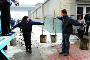 3月2日,5名经过考试被录取的大学生淘粪工在济南市城肥清运管理二处拜师、上岗。他们于去年10月在近400名报考者中被录取并接受了为期半年的培训。据了解,5人中有两名党员,年龄最小的23岁,所学专业涉及计算机、法学等。