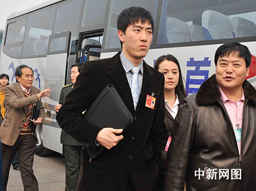 3月3日下午,全国政协委员刘翔从天安门广场下车,走向北京人民大会堂去出席全国政协十一届三次会议开幕式,来回经历了重重媒体包围采访突围。