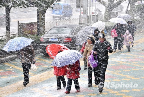 3月3日,安徽淮北市民冒雪在街头行走。当日,受暖湿气流和冷空气影响,安徽淮北市出现今春以来的第二场降雪。气象台发布暴雪蓝色预警信号,预计12小时内,淮北部分地区降雪量将达4毫米以上,气温较低,有道路结冰,对交通或农牧业有影响,提醒有关单位和个人注意防范。