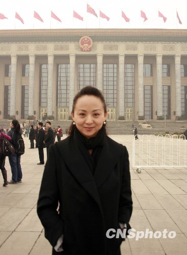 2010年3月3日下午15时,全国政协十一届三次会议在北京人民大会堂开幕,中国残疾人艺术团团长、舞蹈演员、全国政协委员邰丽华出席会议并在人民大会堂前留影。中新社发 金立冬 摄