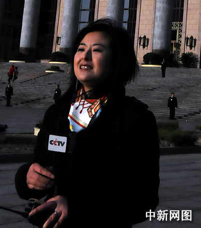 图为央视记者张泉灵在现场进行报道。中新网记者 吴歆摄