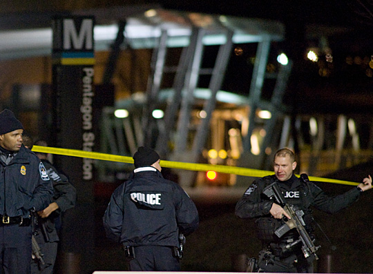 当地时间3月4日晚,一名枪手在通往五角大楼地铁的入口处开抢将两名五角大楼警察打伤。