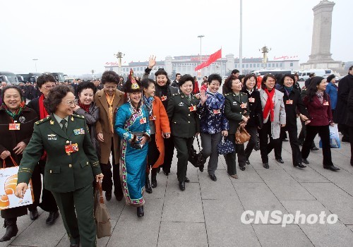 在“三八”妇女节即将来临之际,全国政协十一届三次会议第二次全体会议3月7日在人民大会堂举行。出席会议的女委员们纷纷接到男委员们提前送来的节日祝福,脸上洋溢着节日的喜悦。