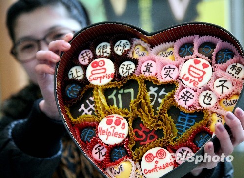 3月8日,江苏南京某商店推出“会说话”的巧克力,这些手工巧克力,配有各种文字装饰,可自主搭配用以表达心声。