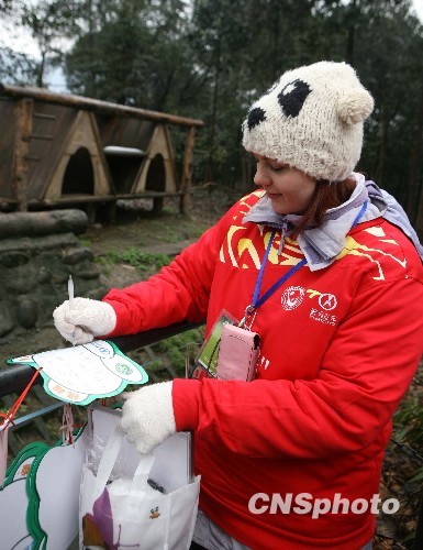图为来自英国的卡莉写下祝福语。中新社发 刘忠俊 摄