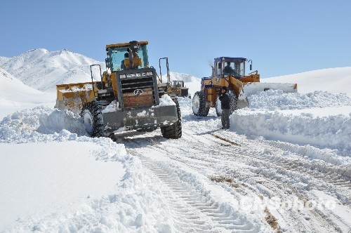 图为玉门市出动大型铲车疏通昌马乡的救援道路。中新社发 玉门市委宣传部供图 摄