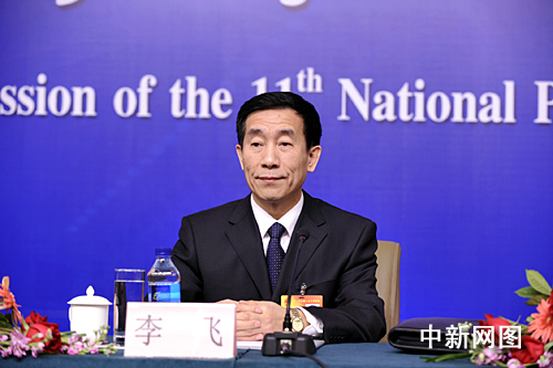 全国人大常委会法制工作委员会副主任李飞接受记者采访。中新网记者 巩健 摄