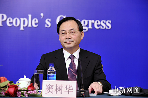 全国人大常委会办公厅秘书局局长窦树华接受集体采访。中新网记者 巩健 摄