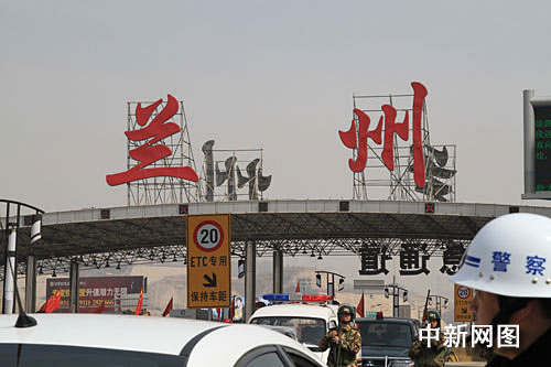 3月10日中午,武警和特警值守在兰州城区北出口,堵查抓捕枪杀特警的犯罪嫌疑人。殷春永 摄