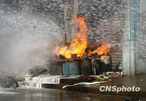 3月10日下午,浙江省衢州市一家小店堆放的液化气罐发生燃烧。由于出事位置地处交通要道三叉路口,当地警方对道路实施了警戒;同时公安消防部门迅速派出多辆消防车赶到现场救援,消防队员用泡沫水枪不断对燃烧的液化气罐实施降温,并勇敢地接近燃烧的液化气罐,将气罐转移到安全处,成功地消除了隐患。