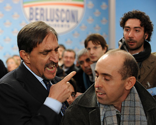 图:意总理记者会遭干扰 国防部长推记者(3)