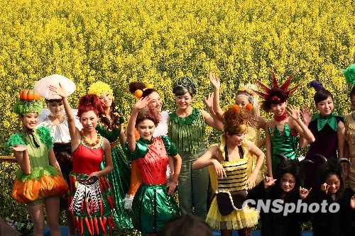 3月11日,成都优质农品模特大赛亮相“2010中国·成都国际油菜花节”,参赛模特儿们以蔬菜、水果、中药材等做背景,另辟蹊径地和服饰结合起来,将优质农品和新农村生活展现得淋漓尽致,此次农模大赛尚属中国内地首创。