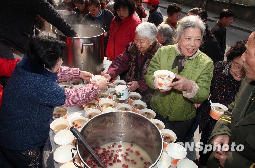 3月12日上午,在“拗九节”到来前夕,福州一社区工作人员为500多位老人送上热腾腾的 “拗九粥”,弘扬敬老爱老之风。农历正月二十九,是福州特有的民间传统“拗九节”,又称敬老节,福州人用糯米、红糖,加上花生、红枣、荸荠、芝麻、桂圆等原料煮成甜粥,称为 “拗九粥”,用来祭祖或馈赠亲友、孝敬父母,祝福平安、健康。中新社发 杨婀娜 摄