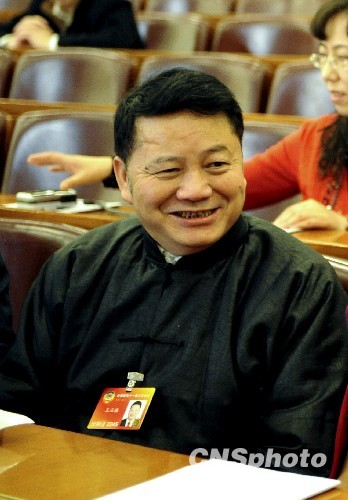 3月10日,政协举行全体会议,全国政协委员王正福穿着唐装出席会议。中新社发 廖攀 摄