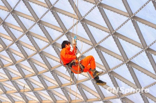 图为工作人员正在施工。中新社发 沈春琛 摄