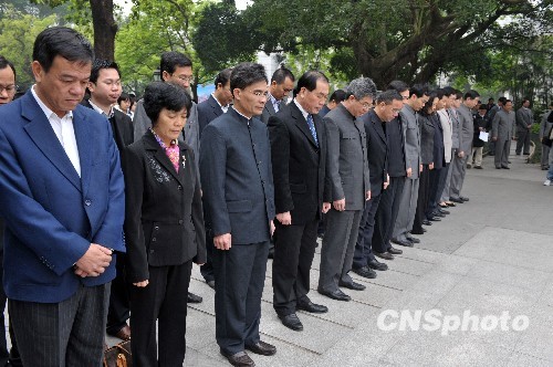 参加纪念活动的社会各界人士默哀。中新社发 黎旭升 摄