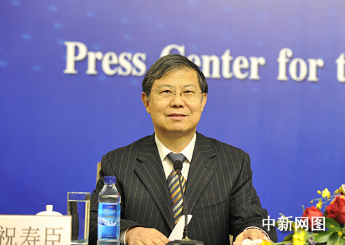记者会主持人祝寿臣 中新网记者 巩健 摄