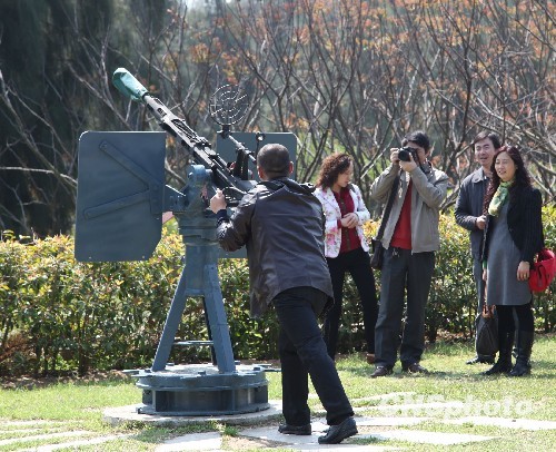 图为金门的战地景物吸引大陆游客摄影留念。中新社发 耿军 摄