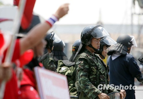 大批军警在场严阵以待,注视红衫军动态。中新社发 洪少葵 摄