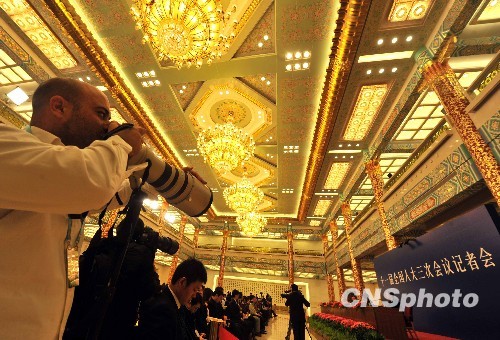 总理记者会:外国摄影记者聚焦金色大厅